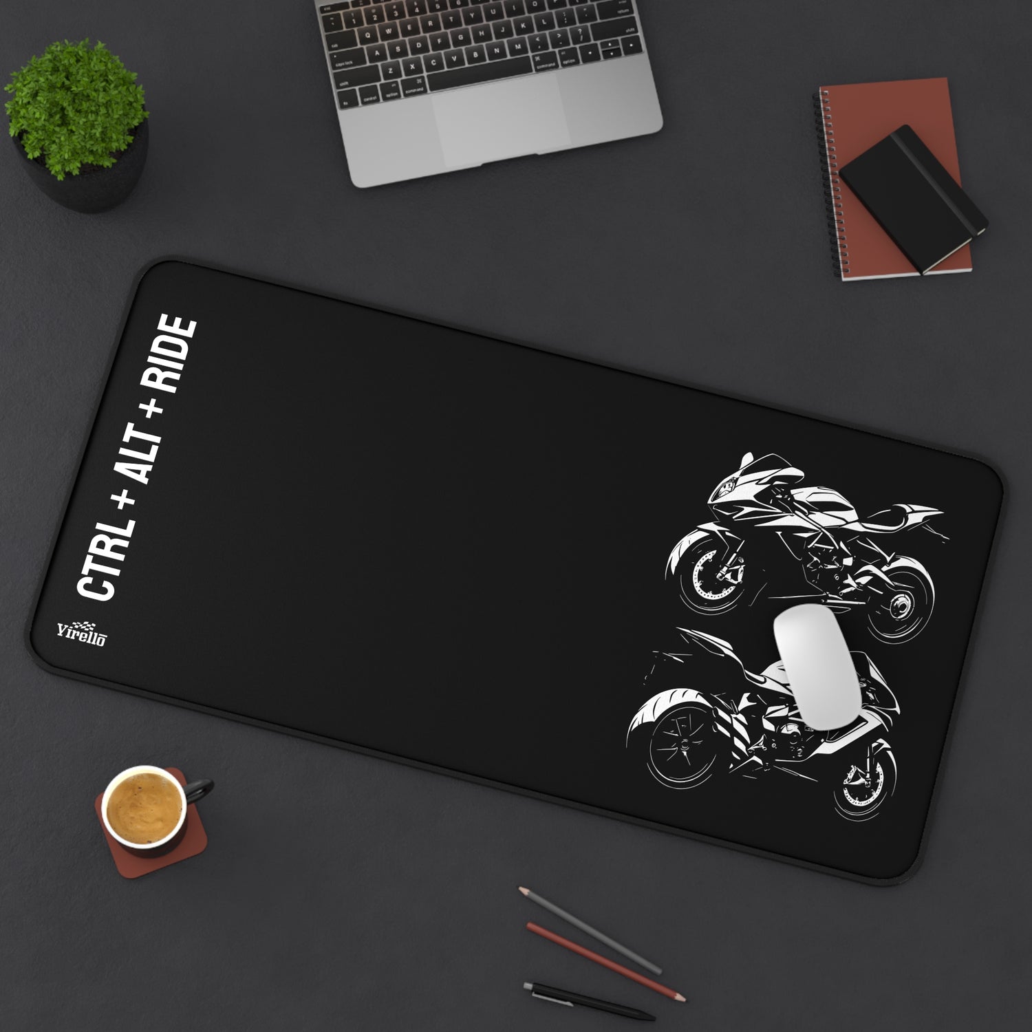 Bring the spirit of the ride to your desk with this 32"x16" motorcycle desk mat. Designed for bikers who live for two wheels and clean setups, this mat combines performance and style for your workspace or gaming rig.