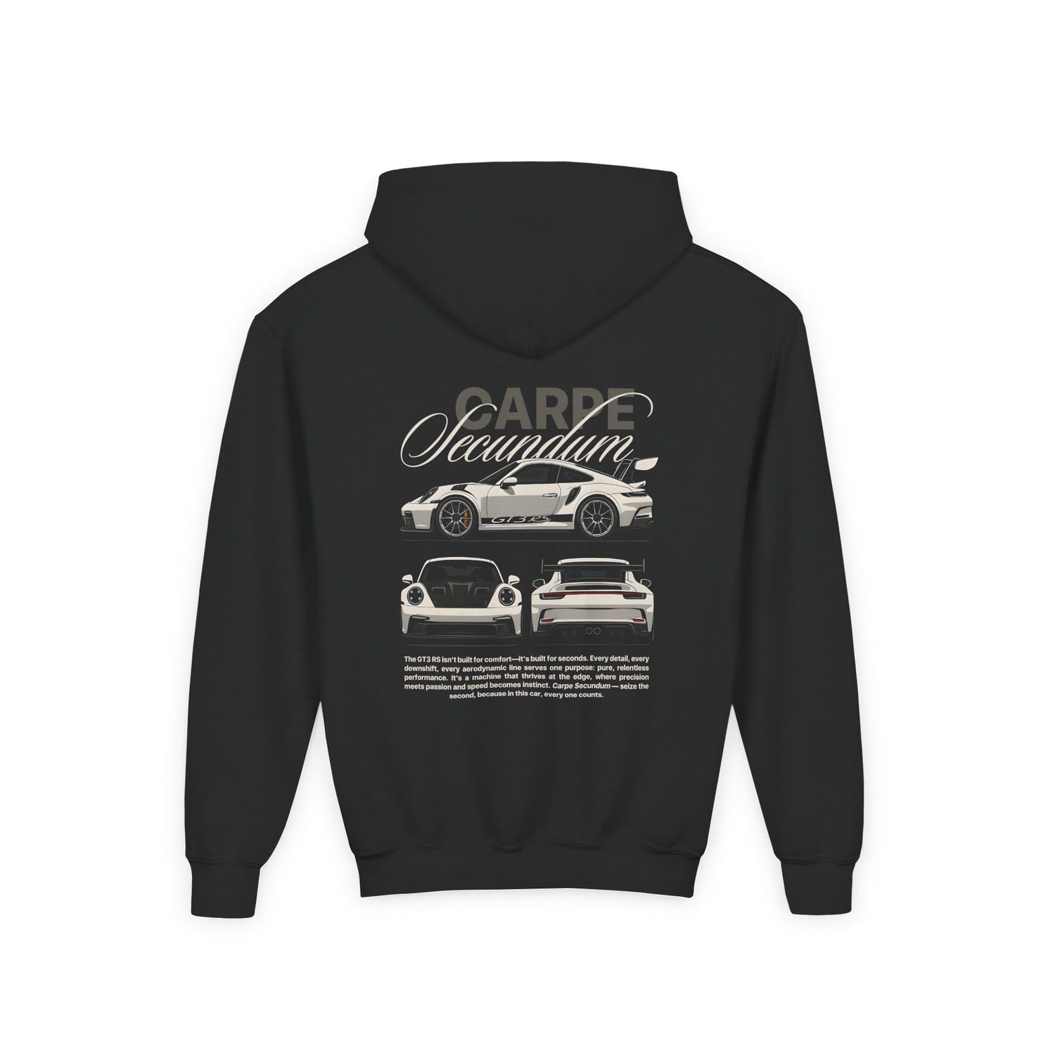 This cozy kids’ hoodie features a bold GT3-RS design that’s perfect for young car lovers. Whether they're into race cars, supercars, or classic rides, this hoodie is built for comfort, style, and everyday fun.