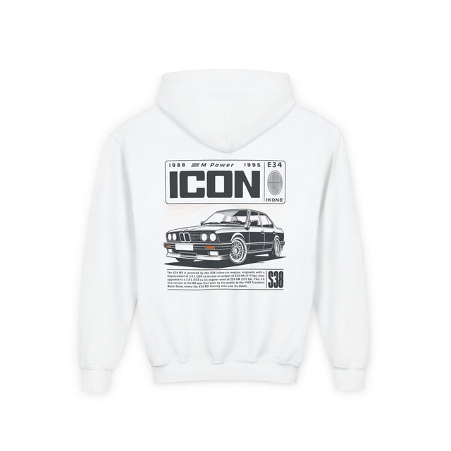 BMW M5 (E34) Kids Hoodie - S / White is backordered and will ship as soon as it is back in stock.
