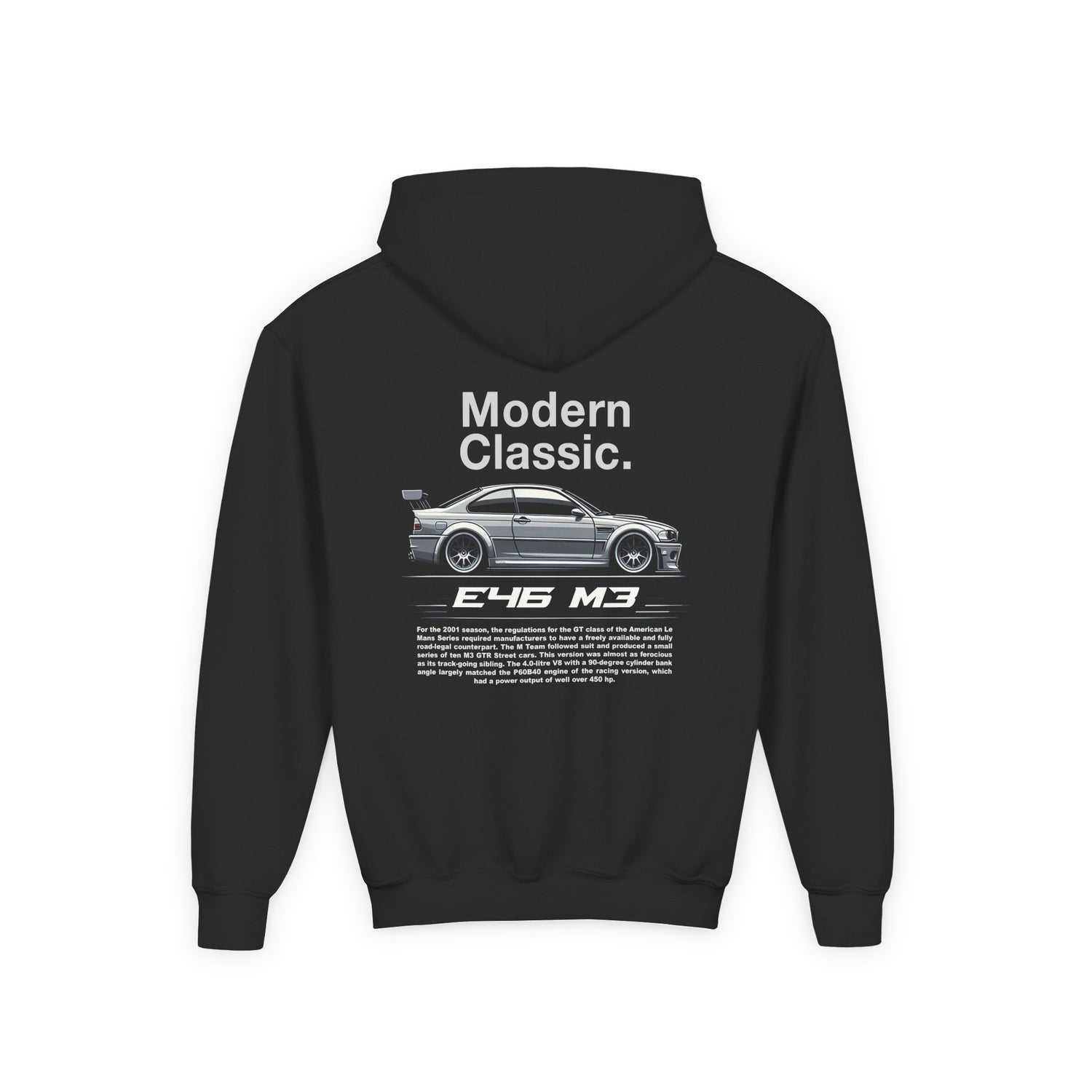 This cozy kids’ hoodie features a bold E46 M3 design that’s perfect for young car lovers. Whether they're into race cars, supercars, or classic rides, this hoodie is built for comfort, style, and everyday fun.