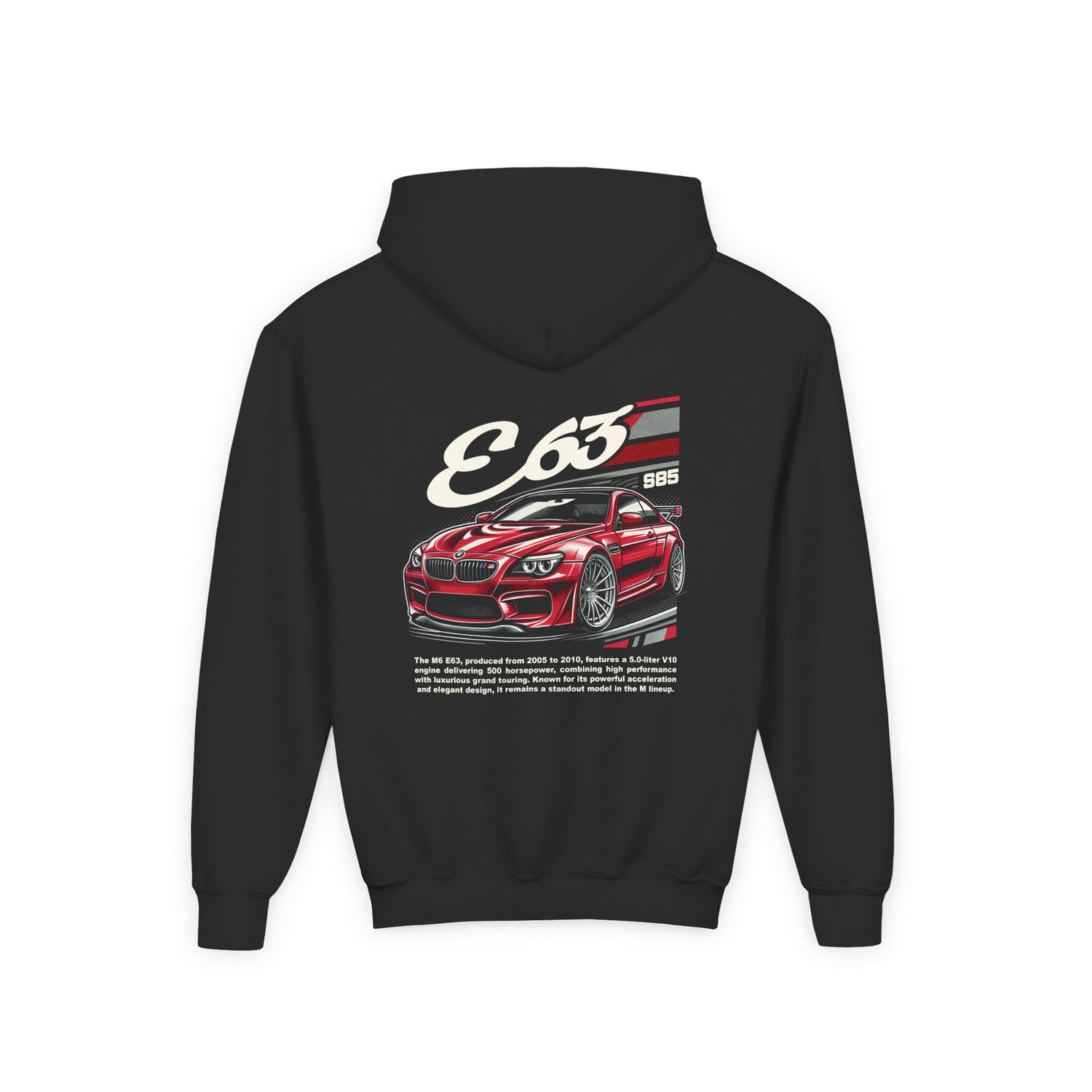 This cozy kids’ hoodie features a bold E63 M6 design that’s perfect for young car lovers. Whether they're into race cars, supercars, or classic rides, this hoodie is built for comfort, style, and everyday fun.