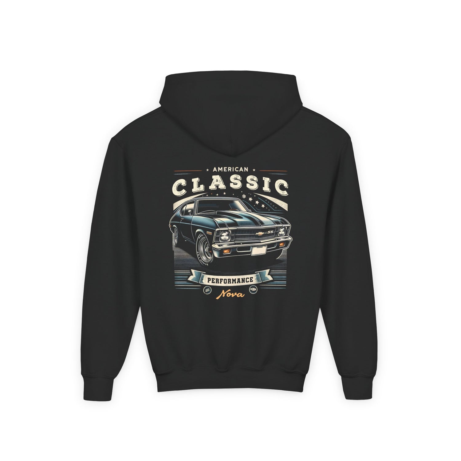 This cozy kids’ hoodie features a bold Nova design that’s perfect for young car lovers. Whether they're into race cars, supercars, or classic rides, this hoodie is built for comfort, style, and everyday fun.