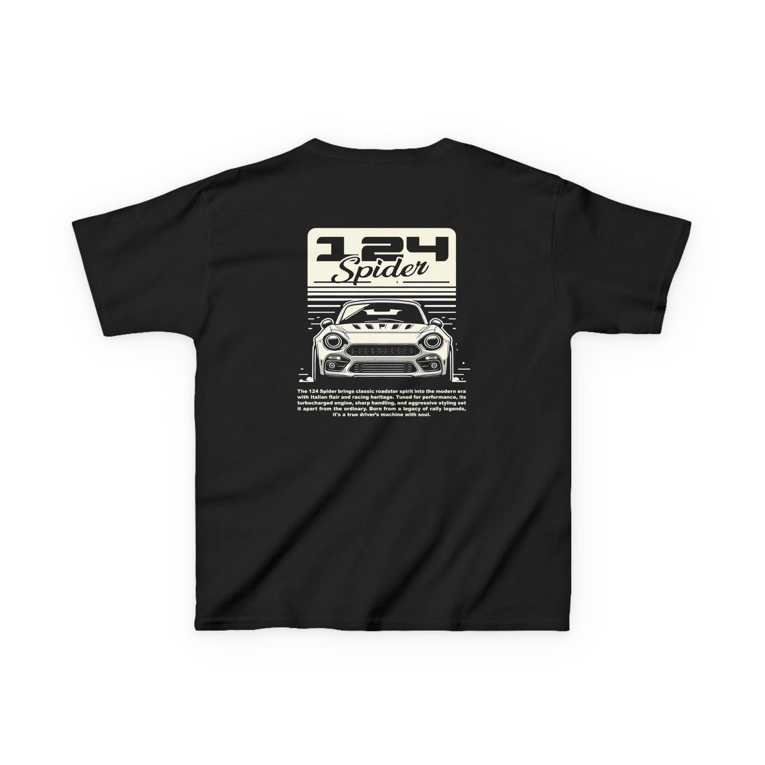 Let your little car lover show off their favorite ride with this fun and comfy 124 Spider kids' t-shirt. Designed for everyday wear, this graphic tee is perfect for young fans of race cars, supercars, and classic builds.