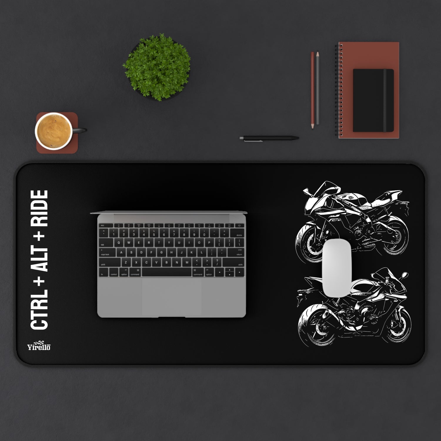 Bring the spirit of the ride to your desk with this 32"x16" motorcycle desk mat. Designed for bikers who live for two wheels and clean setups, this mat combines performance and style for your workspace or gaming rig.