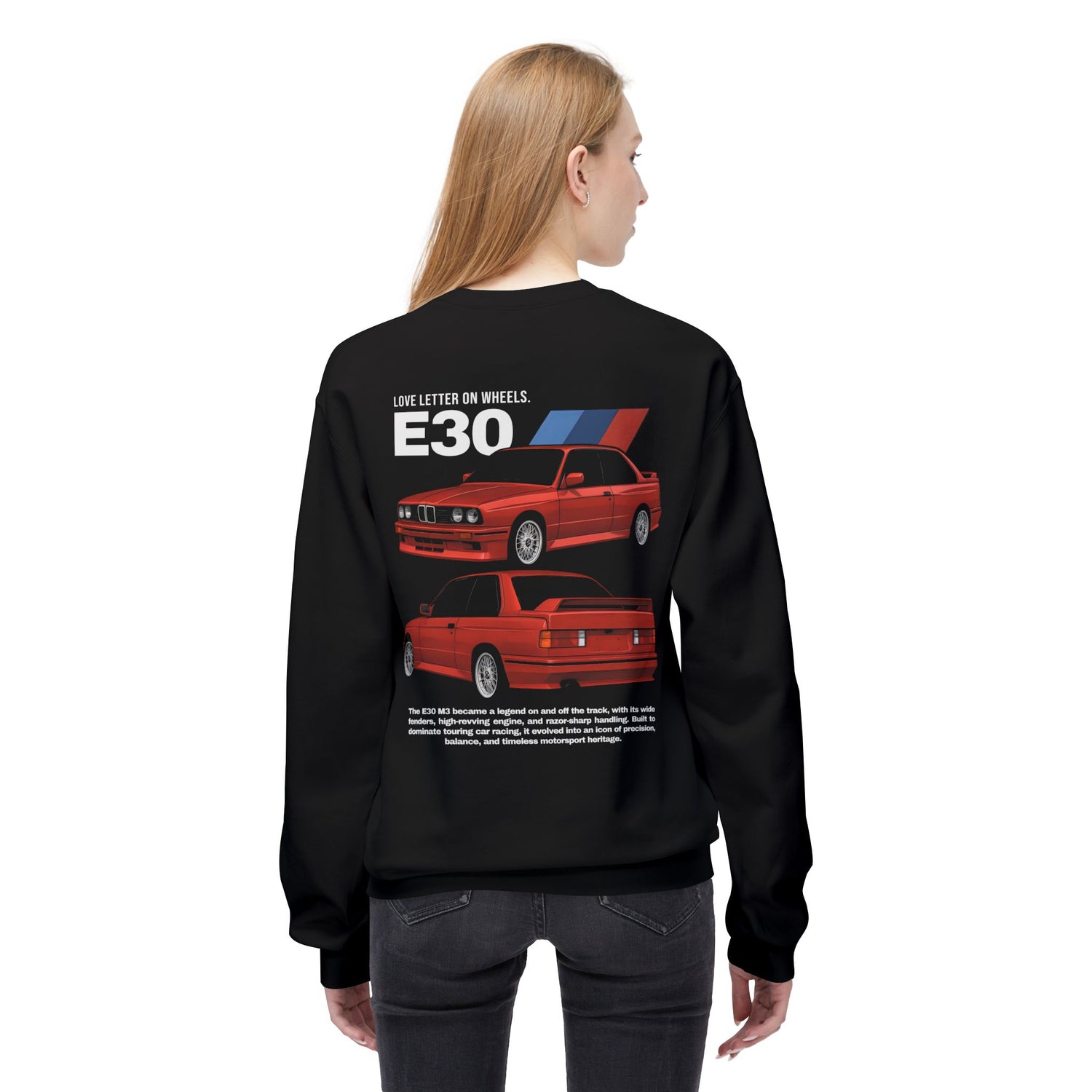 Show your love for cars in comfort and style with this E30 M3 crewneck sweatshirt. Designed for true car enthusiasts, this pullover blends bold automotive graphics with a soft, premium feel.