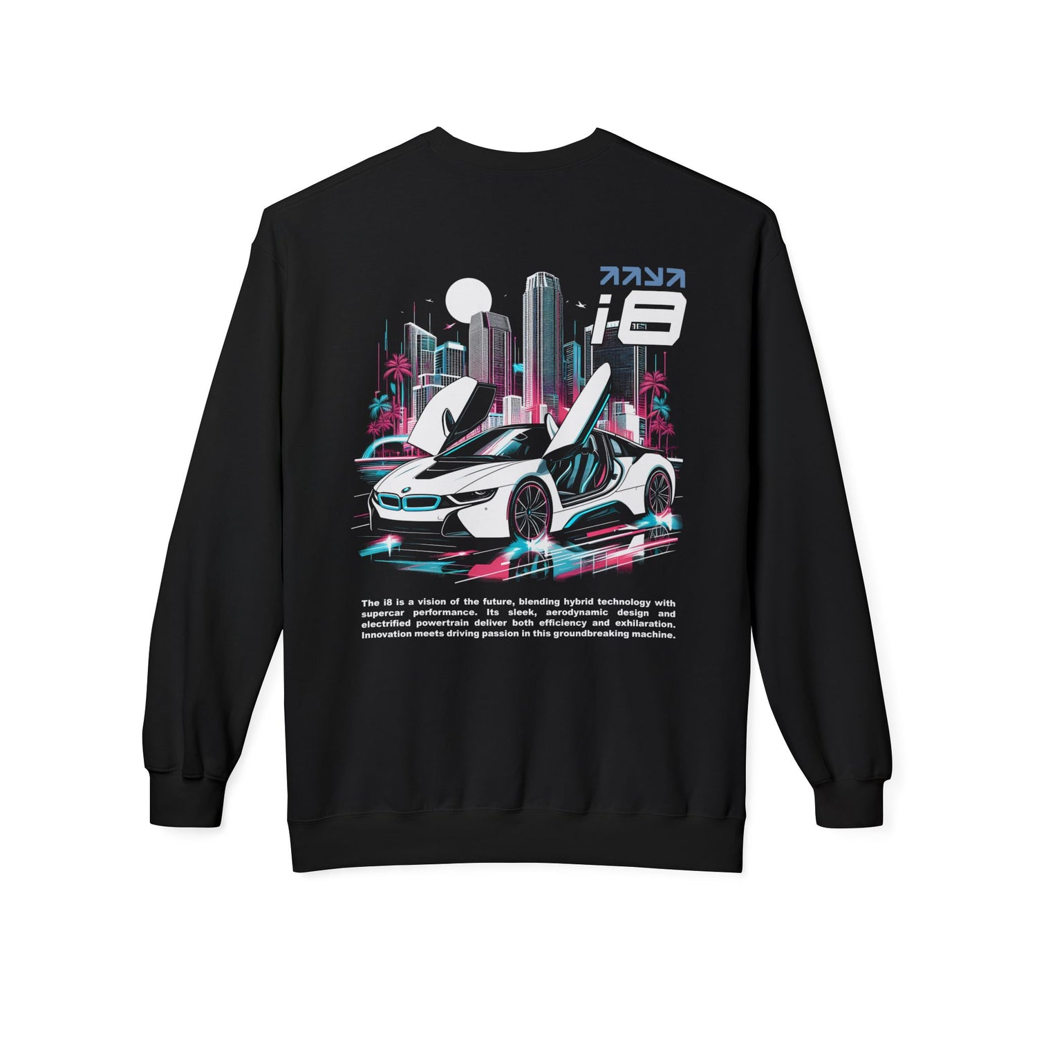 Show your love for cars in comfort and style with this i8 crewneck sweatshirt. Designed for true car enthusiasts, this pullover blends bold automotive graphics with a soft, premium feel.
