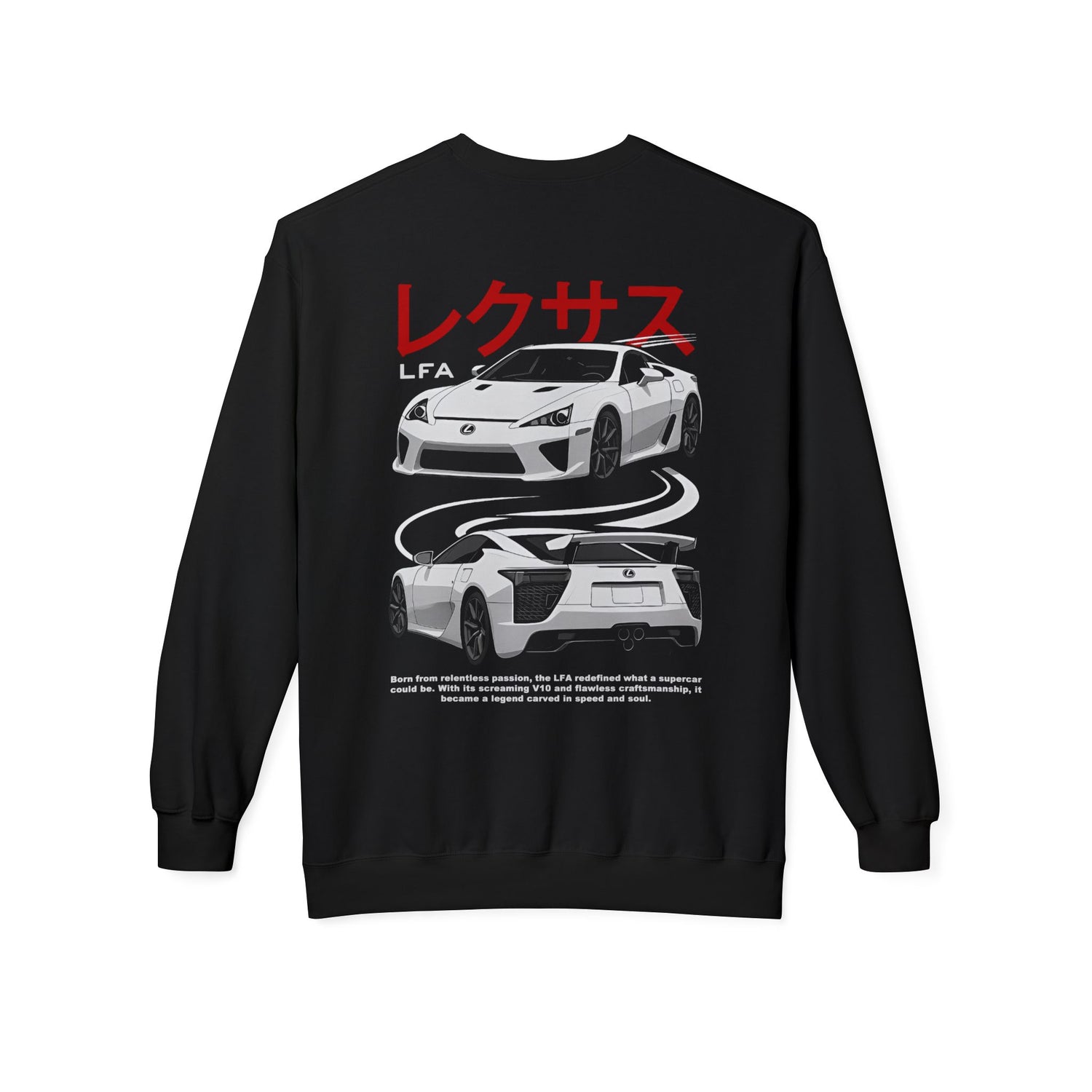 Show your love for cars in comfort and style with this LFA crewneck sweatshirt. Designed for true car enthusiasts, this pullover blends bold automotive graphics with a soft, premium feel.