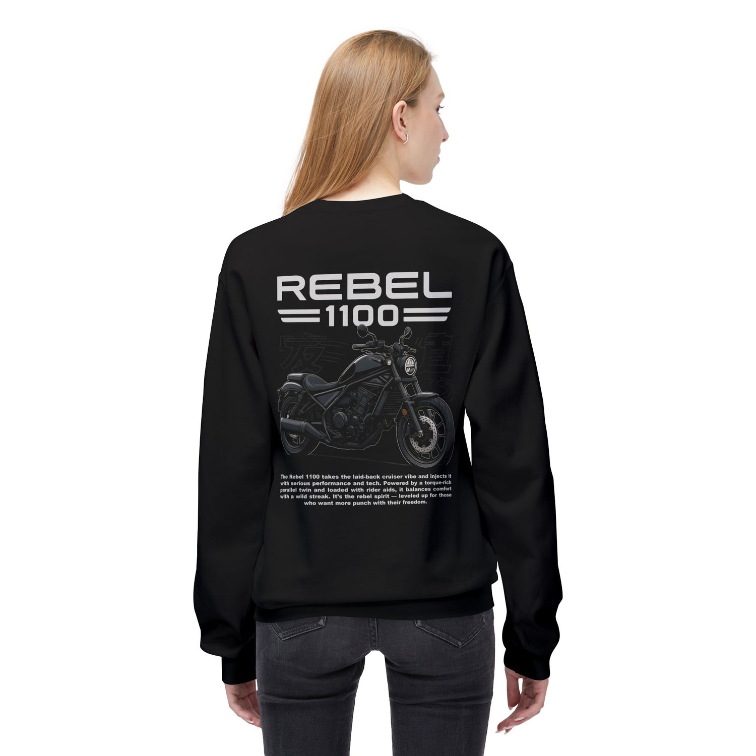 Stay warm and ride in style with this Rebel 1100 motorcycle sweatshirt. Featuring a clean crewneck cut and a bold rider-inspired graphic, this pullover is made for bikers who carry their lifestyle beyond the handlebars.