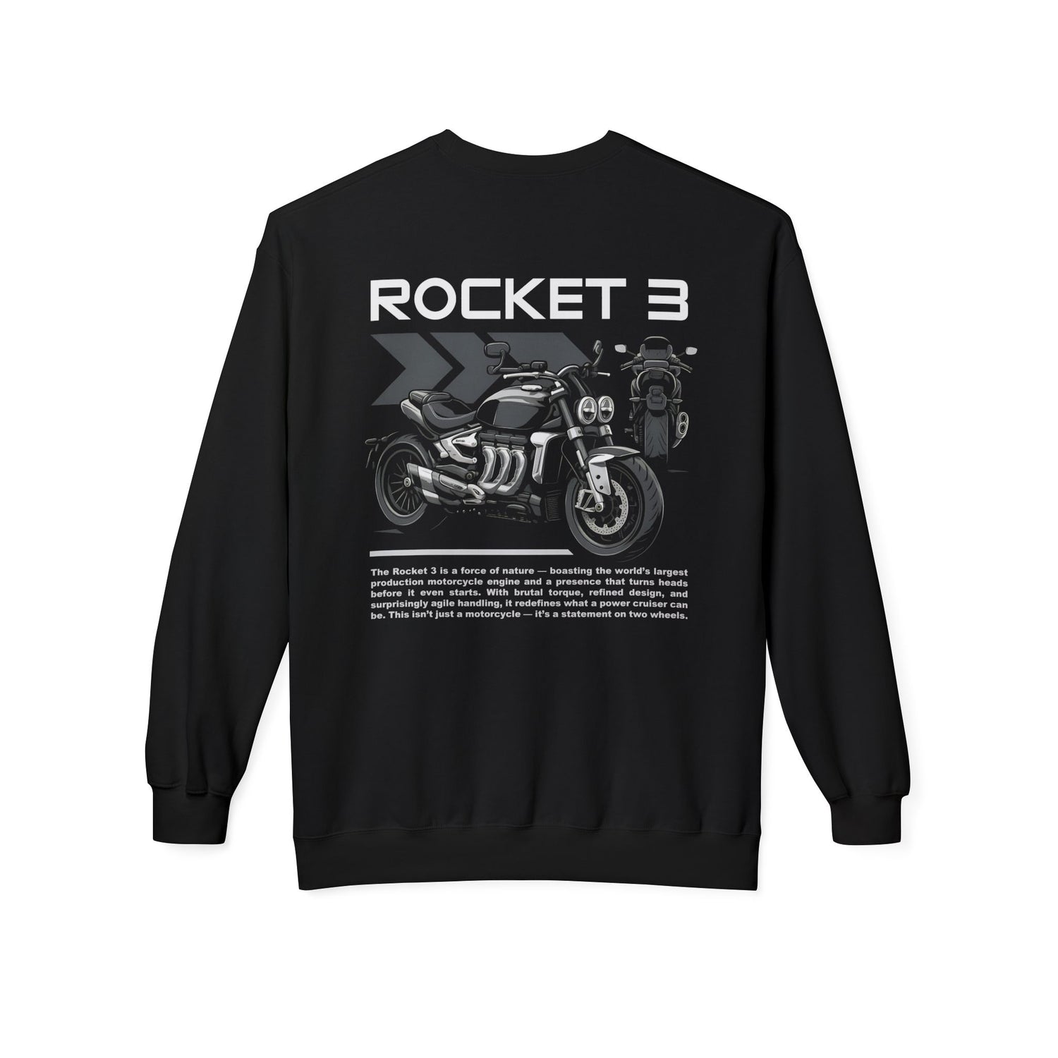Stay warm and ride in style with this Rocket 3 motorcycle sweatshirt. Featuring a clean crewneck cut and a bold rider-inspired graphic, this pullover is made for bikers who carry their lifestyle beyond the handlebars.