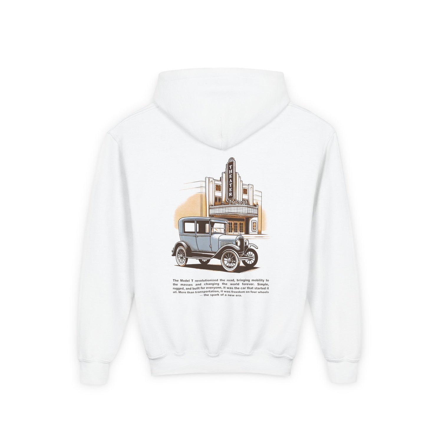 This cozy kids’ hoodie features a bold Model T design that’s perfect for young car lovers. Whether they're into race cars, supercars, or classic rides, this hoodie is built for comfort, style, and everyday fun.